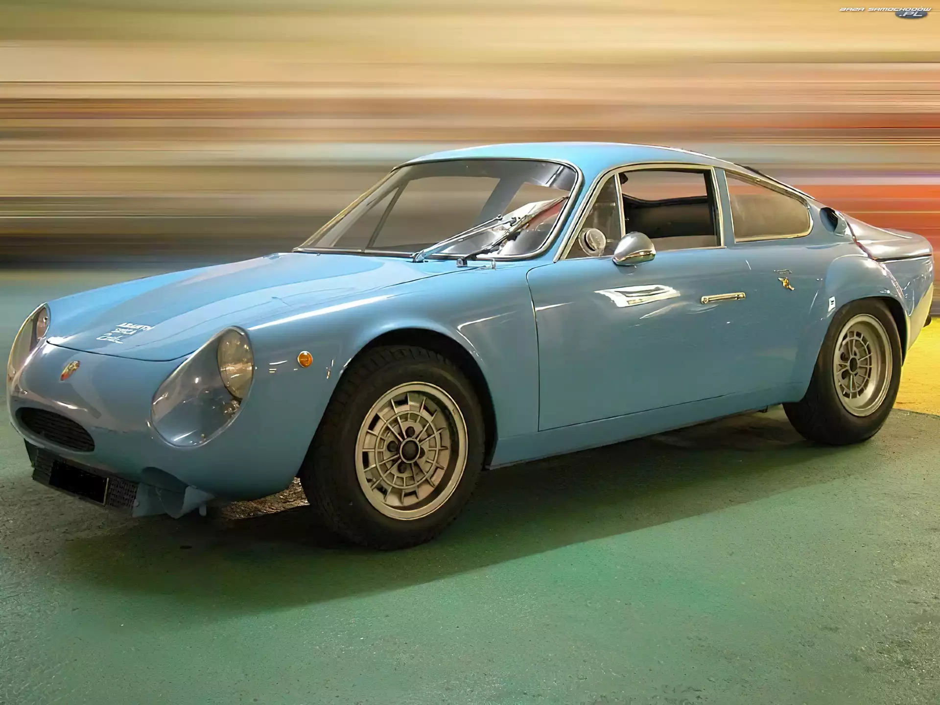 Samochód: Koła, Błękitny, Abarth Bialbero