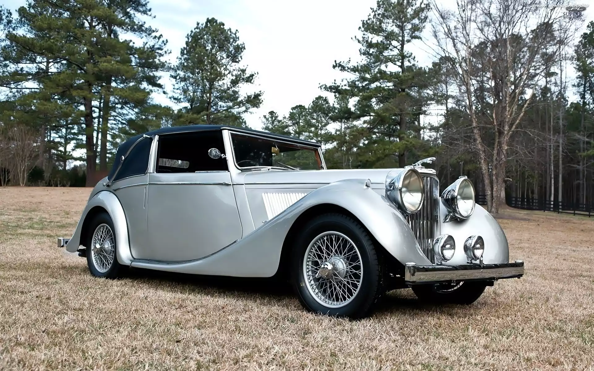 Zabytkowy, Drzewa, Samochód, Jaguar- Zdjęcia samochodów